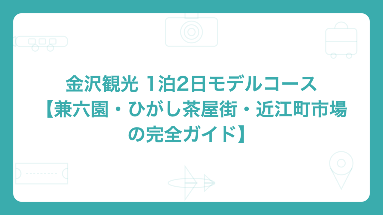 A: 兼六園・金沢城・ひがし茶屋街・近江町市場・武家屋敷跡の主要スポットは1泊2日で十分回れます。2泊3日あれば忍者寺(妙立寺)や輪島朝市(日帰り)も加えられます。