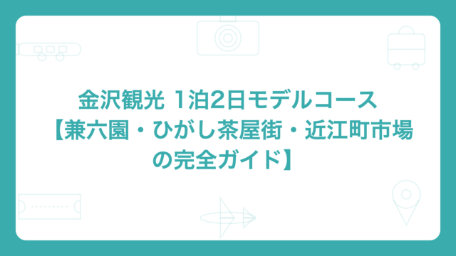 旅行 金沢観光 1泊2日モデルコース【兼六園・ひがし茶屋街・近江町市場の完全ガイド】 2026年4月4日 にちじょうくん https://nichijo-kun.com/wp-content/uploads/2023/06/e0d824005d10e951faaba64381519406-1.jpg にちじょうくんのブログ 「日本の小京都」と呼ばれる金沢。兼六園・金沢城・ひがし茶屋街・近江町市場など、コンパクトなエリアに見どころが凝縮しています。東京から新幹線 …